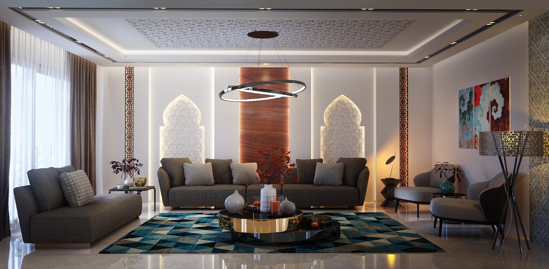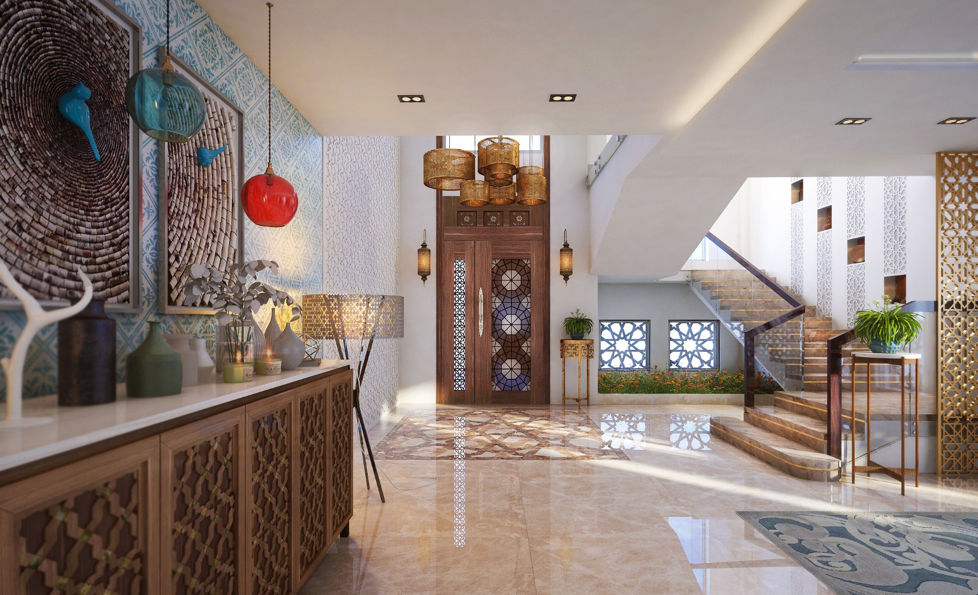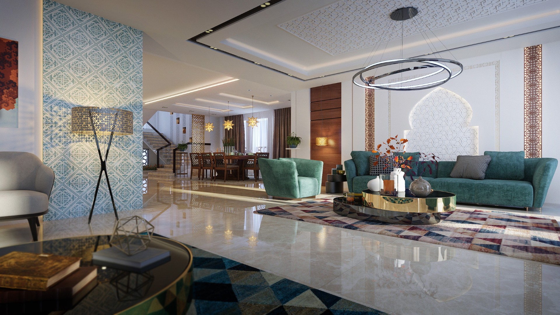 Private villa in new capital Egypt simplicity of modernism and sophistication of Andalusia interiors and incorporates the stunning colour and contrast that are so common in Andalusian inspired designs.