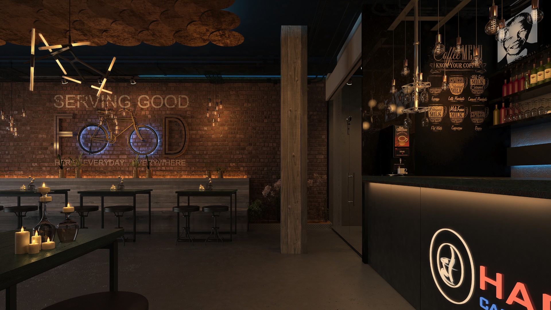 Industrial cafe interior the design bridges the gap between what is and what’s possible provides a more optimistic way of looking at the future by re framing problems as opportunities.